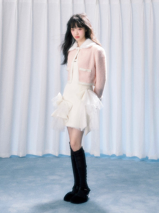 탈착식 페이크 칼라 레이스 가죽 재킷