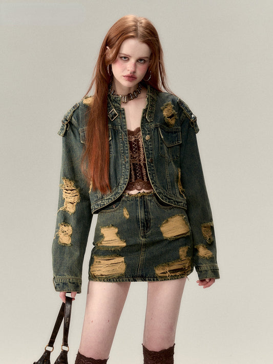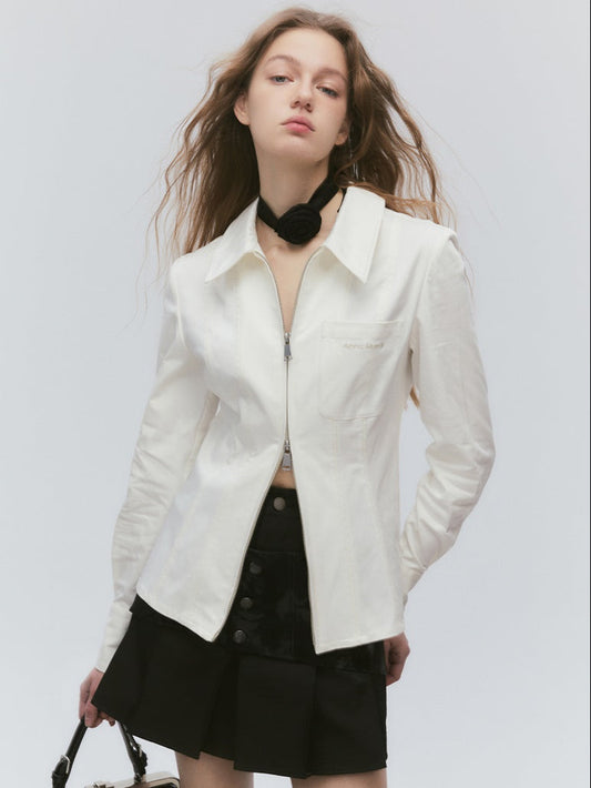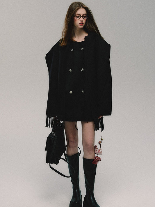 더블 브레스티드 스톨 칼라 쇼트 코트