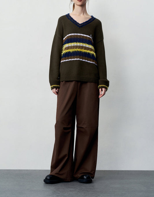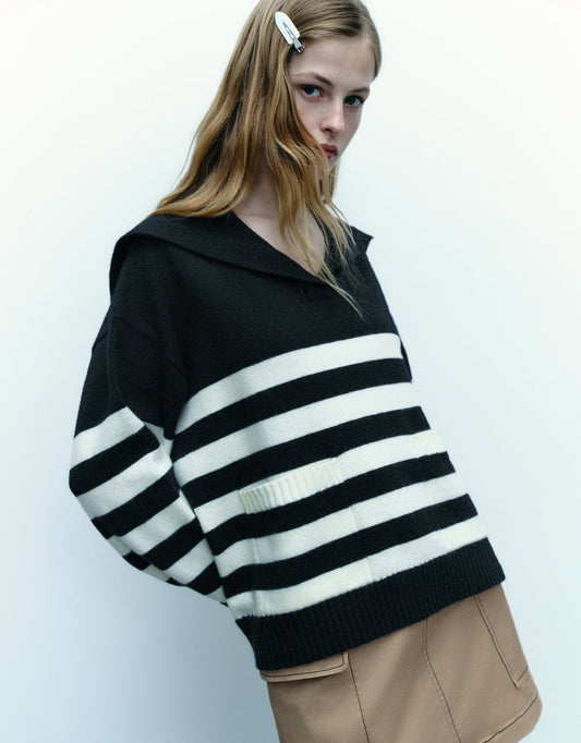 Drop Shoulder Sleeve Striped Knitted T-Shirt