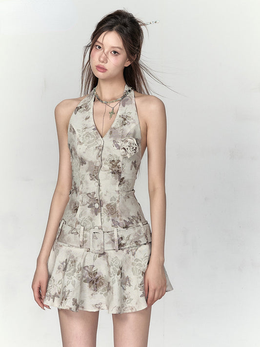Anwen 스트랩리스 플라워 미니 드레스 인 블러시