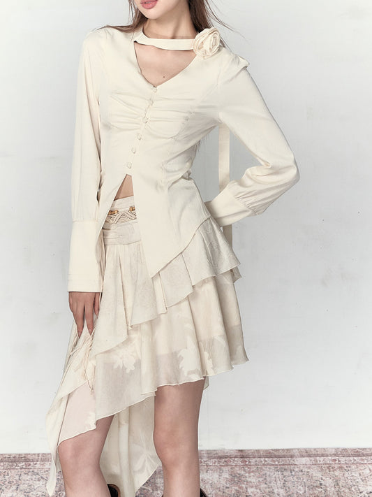 Arabella Long Sleeve Top & Mini Skirt Set - Nude