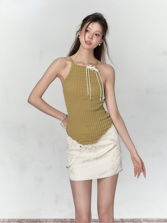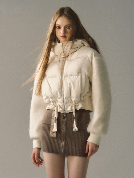 Ansley 스트랩리스 깃털 메쉬 스커트 세트 (화이트)