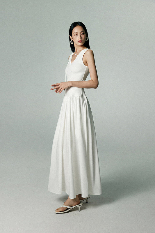 드롭 웨이스트 V 맥시 드레스 화이트 색상