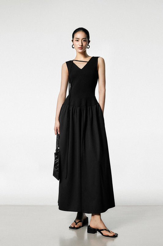 드롭 웨이스트 V 맥시 드레스블랙 색상