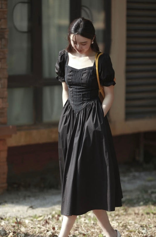 Drop Shoulder Sleeve Crew Neck A-Line Dress