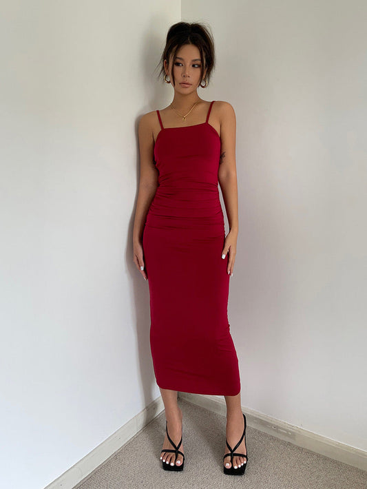 드롭 트위스트 백 바디콘 캐미 드레스 레드 색상