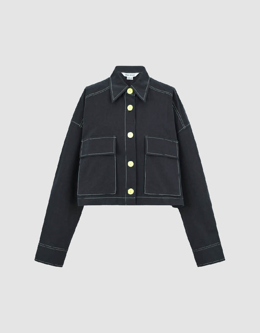 Drop Shoulder Sleeve Button Up A-Line Jacket
