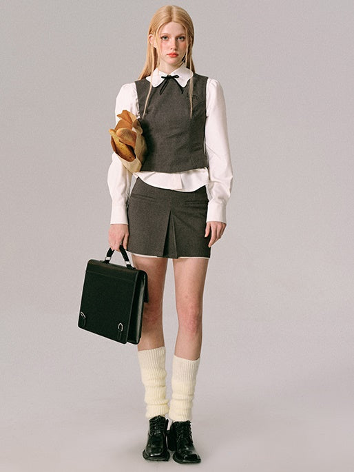 자수 슬림 쇼트 베스트&턱 미니 스커트