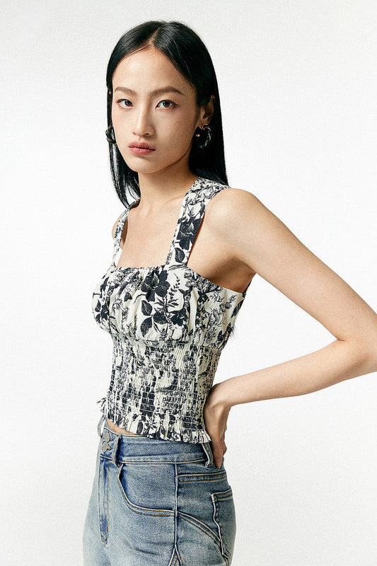 Etoile 프린트 컷아웃 백 탑 화이트/블루 색상