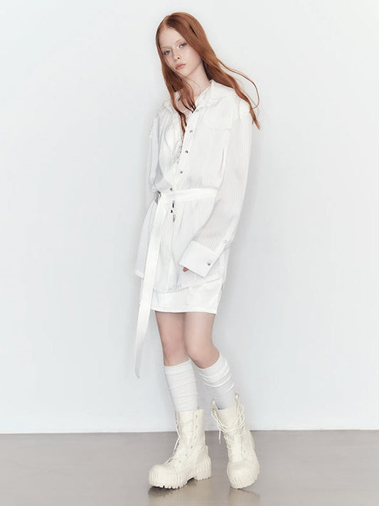 페이크 2피스 스트래피 셔츠 원피스