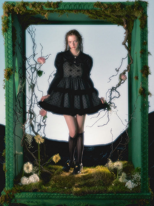 플로킹 폴카 도트 스트랩 케이크 스커트