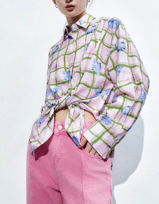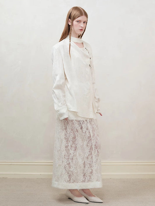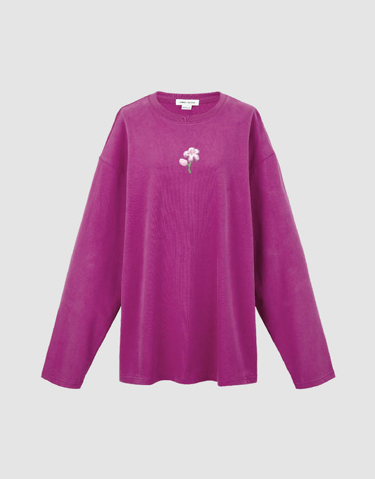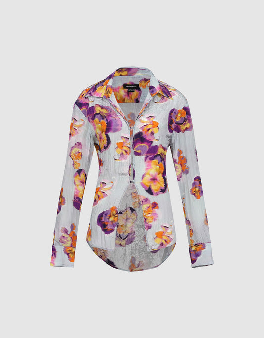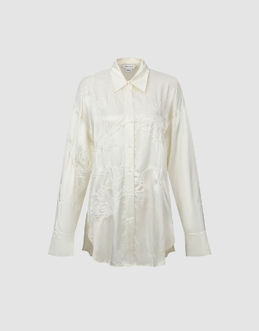 꽃 자수 새틴 차이나 오버사이즈 셔츠