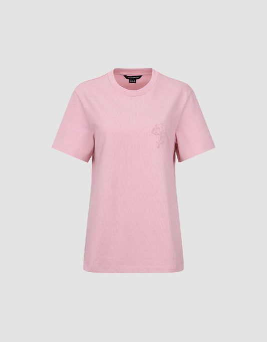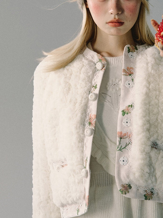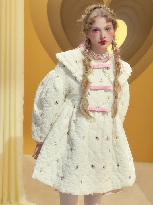 플라워 자수 루즈한 중간 길이 코튼 퀼팅 코트