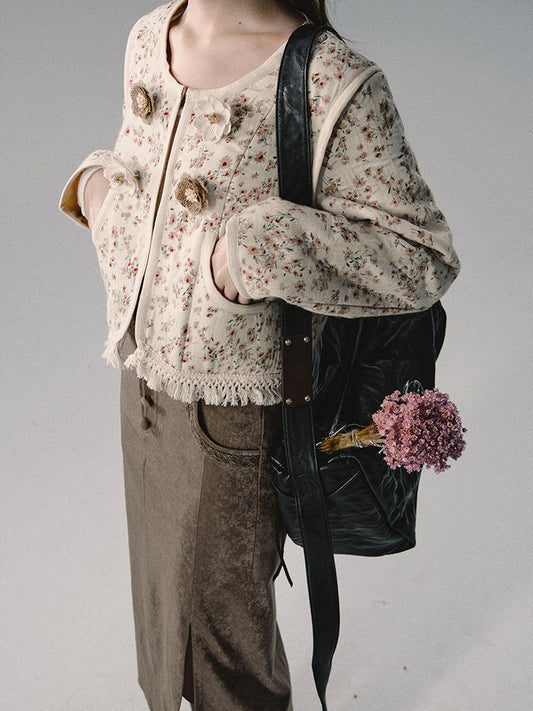 플라워 노카라 레트로 큐트 태슬 프린지 재킷