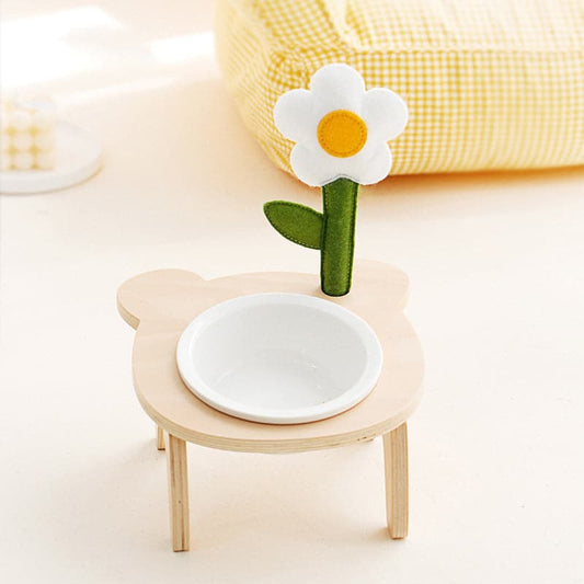 꽃 장식 곰 그릇 기울이기 애완 동물 그릇 홀더 고양이 그릇