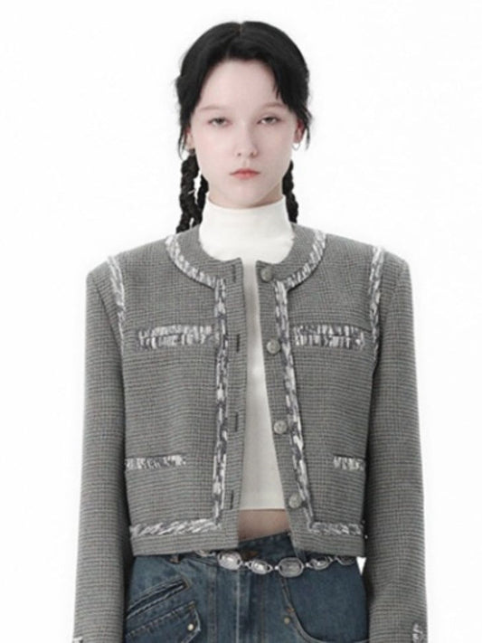 포멀 트위드 클래시 머츄어 노카라 재킷