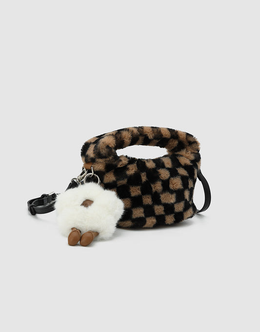 Fluffy Checkered Shoulder Bag