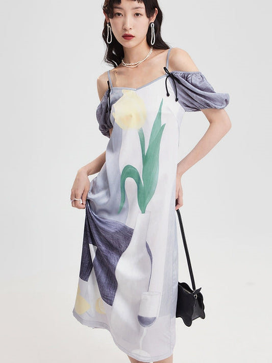 플라워 스플라이싱 서스펜더 케이크 드레스