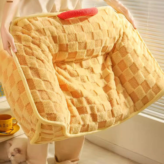 푹신한 터프티드 컴프티 스퀘어 체크무늬 개 및 고양이 애완동물 침대