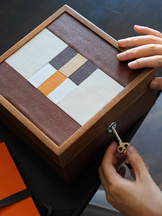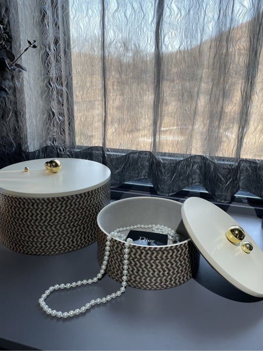 컬러 블록 가죽 화장 거울 & 귀걸이 정리함이 포함된 보석함