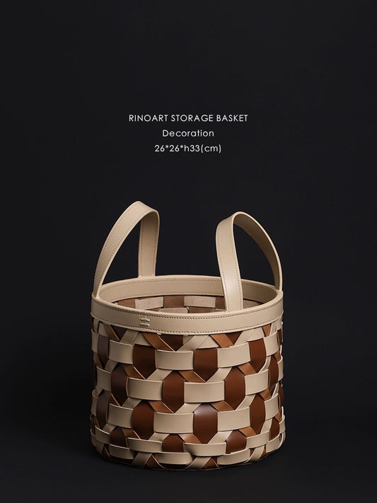 손으로 짠 투톤 탑 레이어 안장 가죽 더러운 옷 보관 바구니
