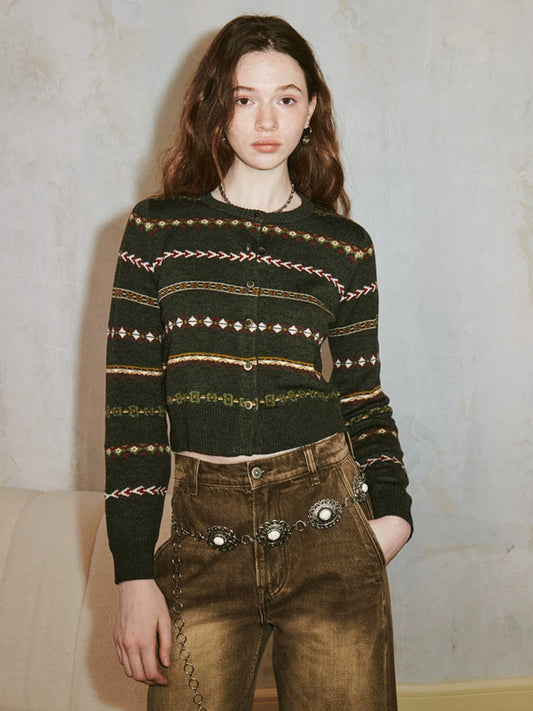 레트로 아이슬란드 플라워 쇼트 니트 가디건