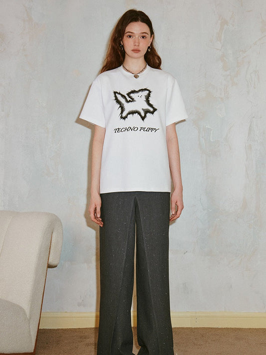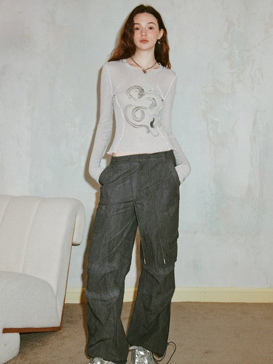 미세 투과성 드래곤 잉크 프린트 슬림핏 바텀 셔츠