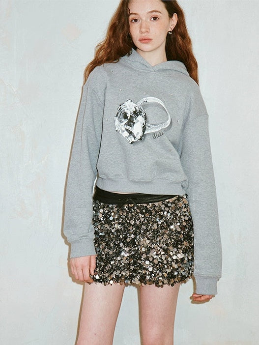 다이아몬드 링 프린트 후드 스웨트 셔츠