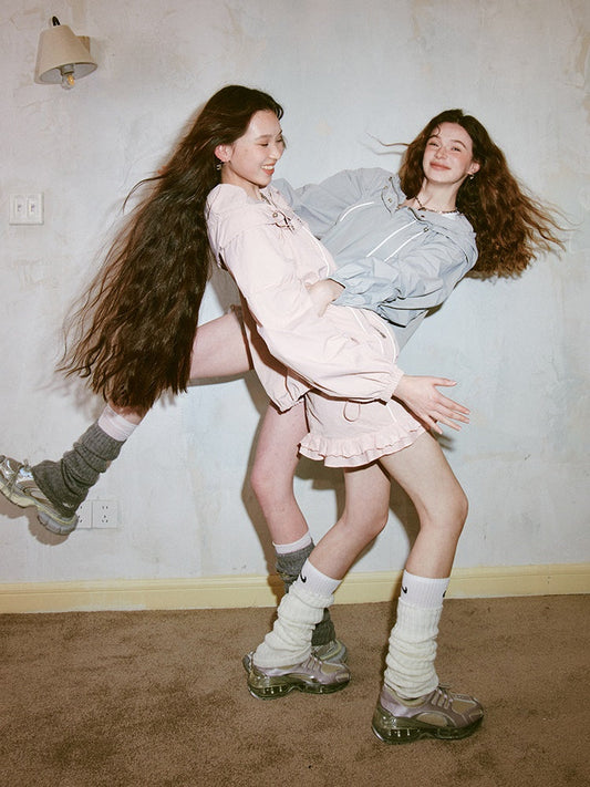 스포츠 워크 스타일 후드 자켓 & 프릴 쇼트 스커트