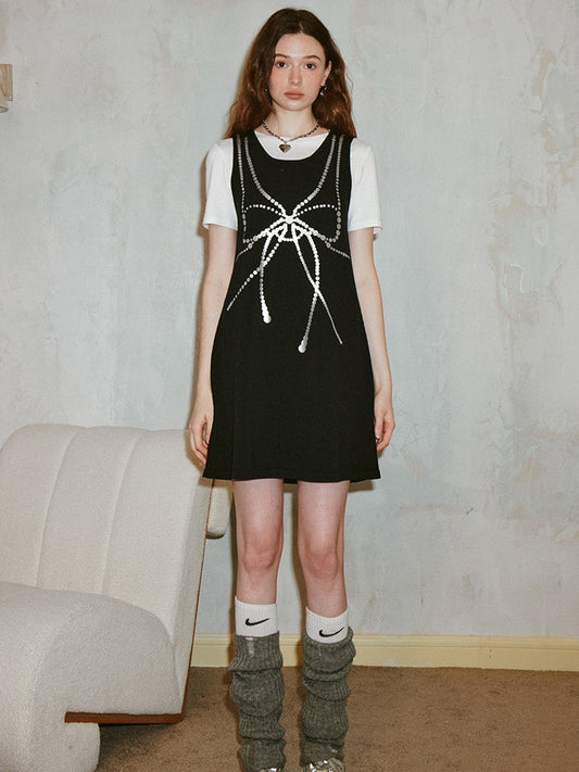 페이크 투피스 레이스 러브 프린트 루즈 스웨트