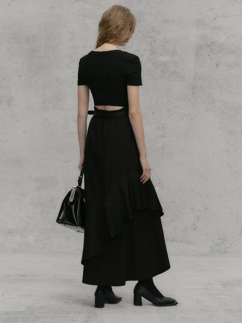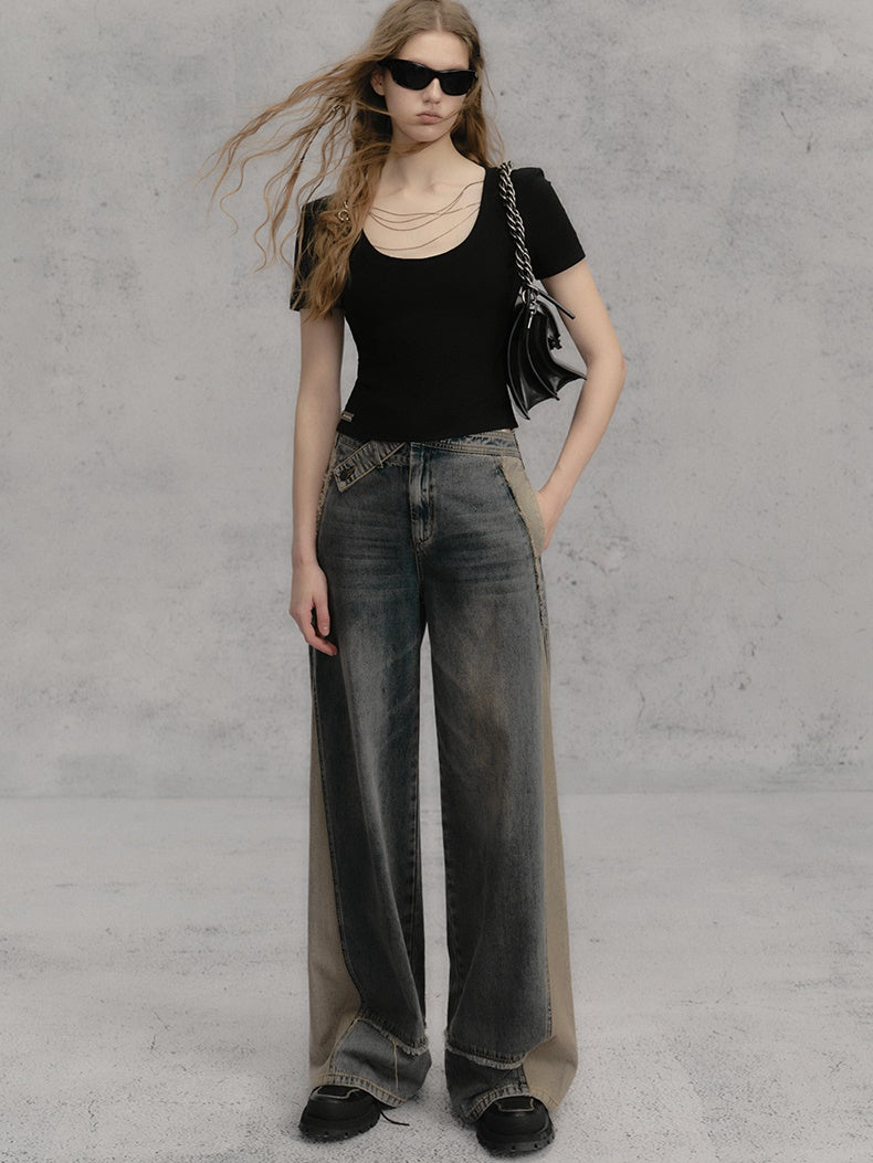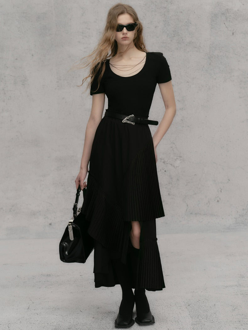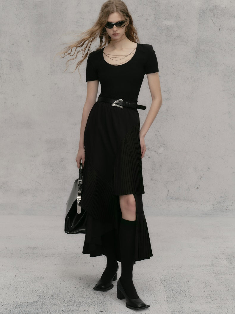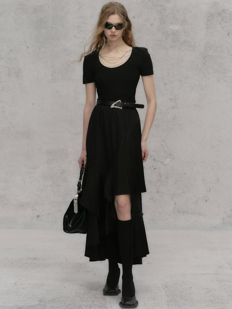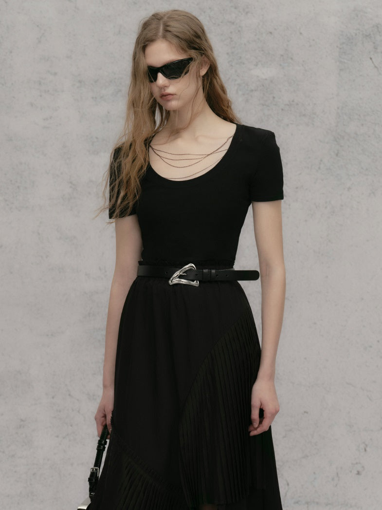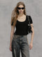 체인 숄더 패드 쇼트 티셔츠