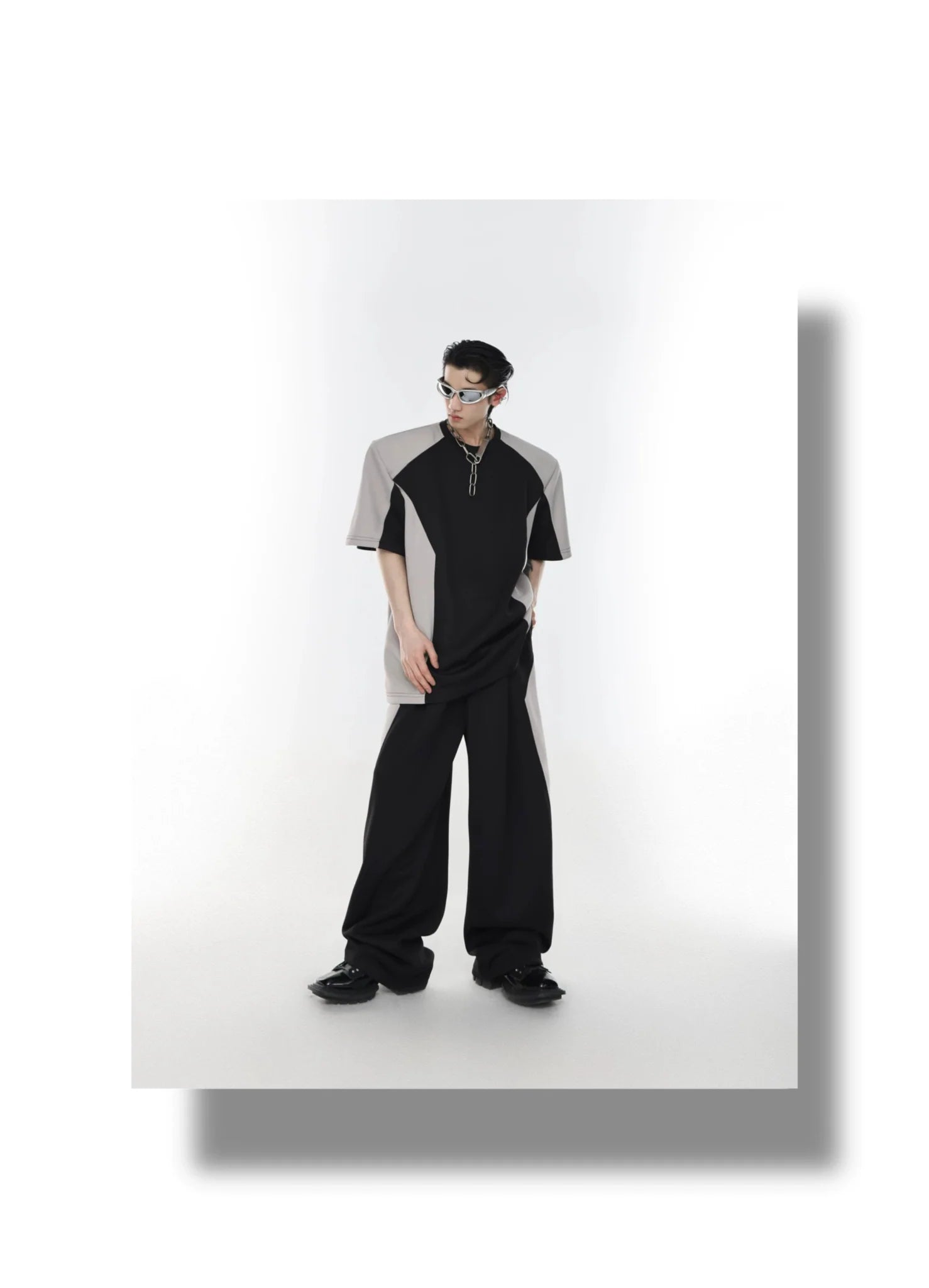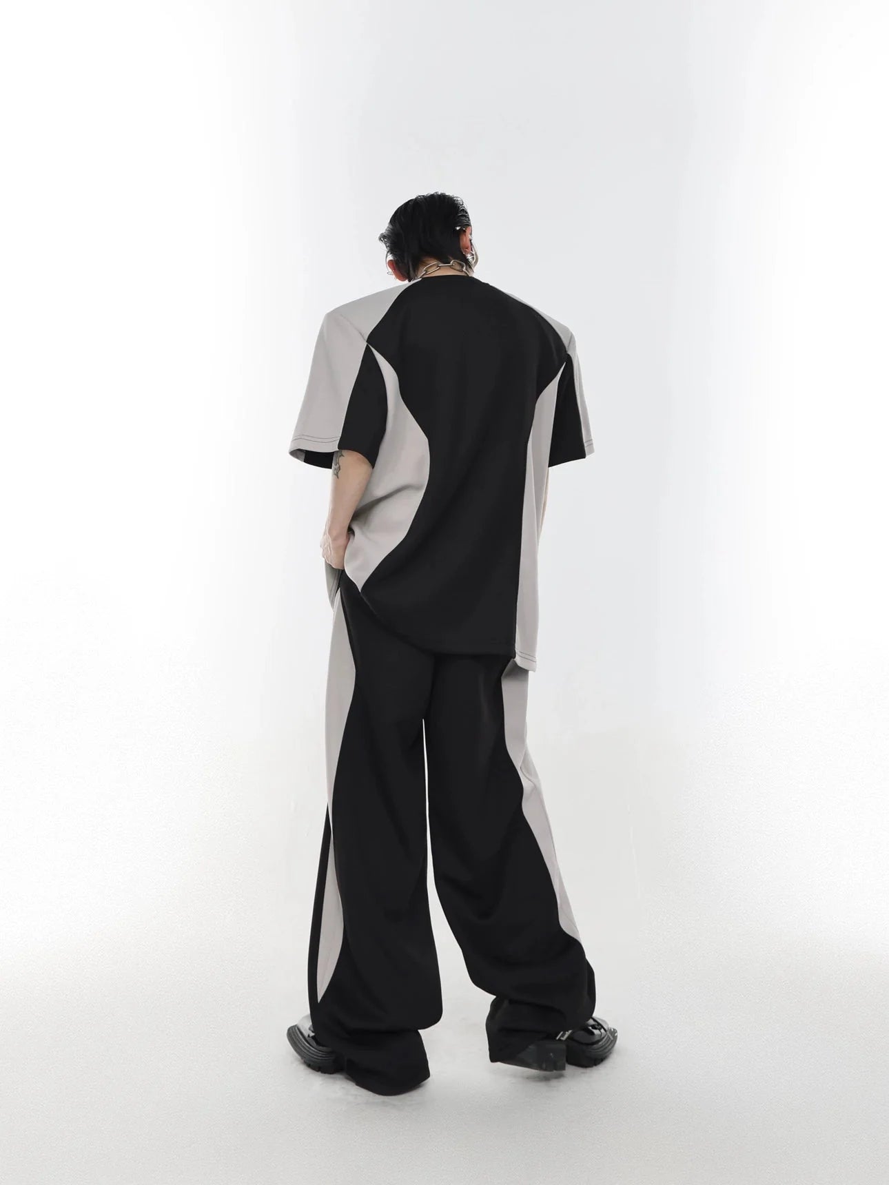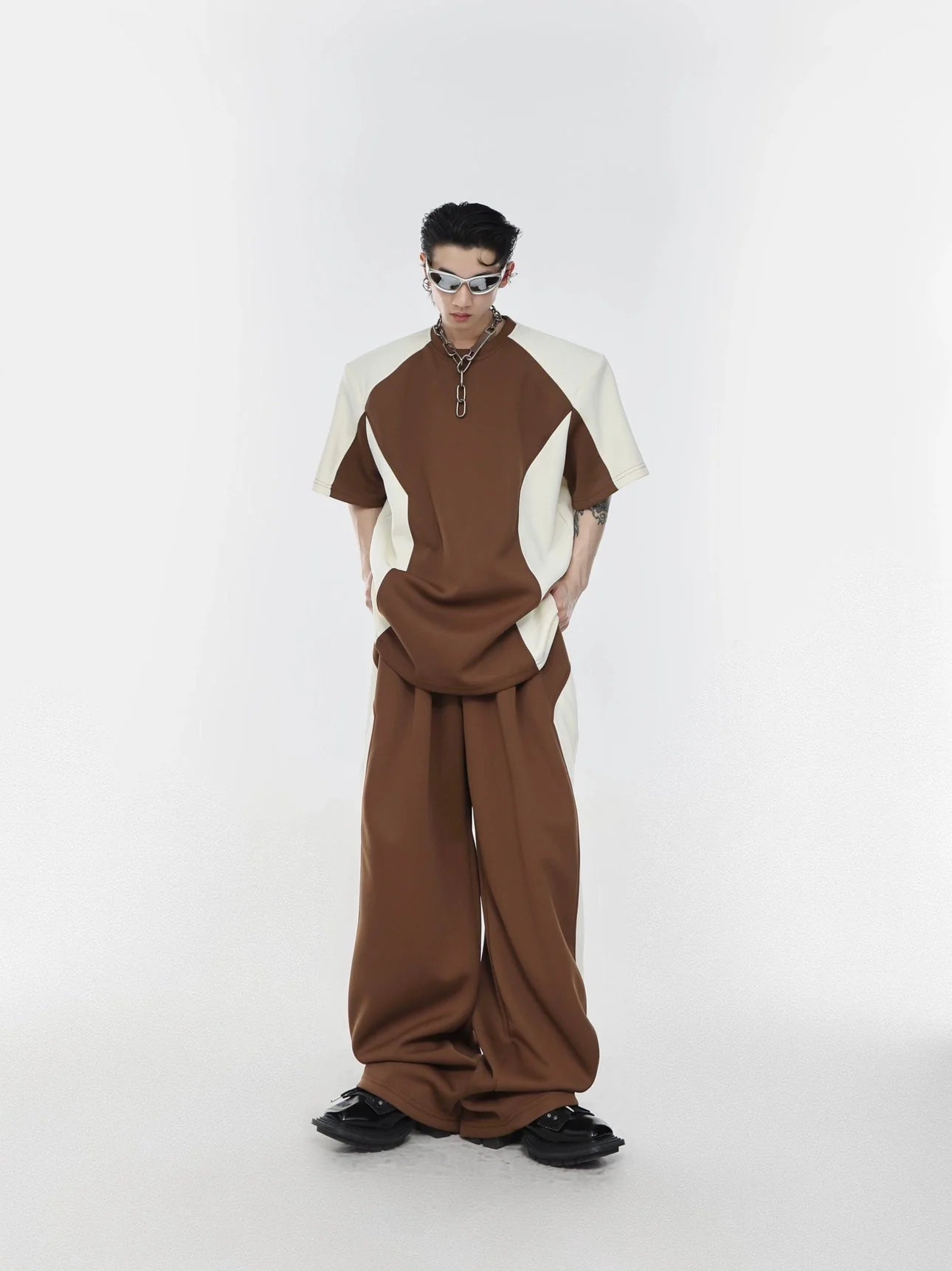 Color Blocking Shoulder Pad Short Sleeve Casual T-Shirt and Sports Set