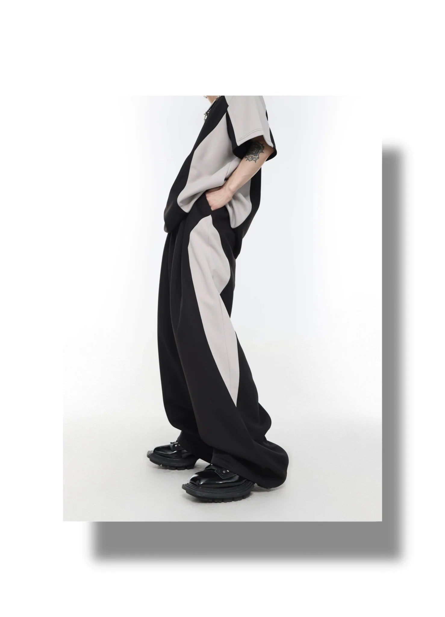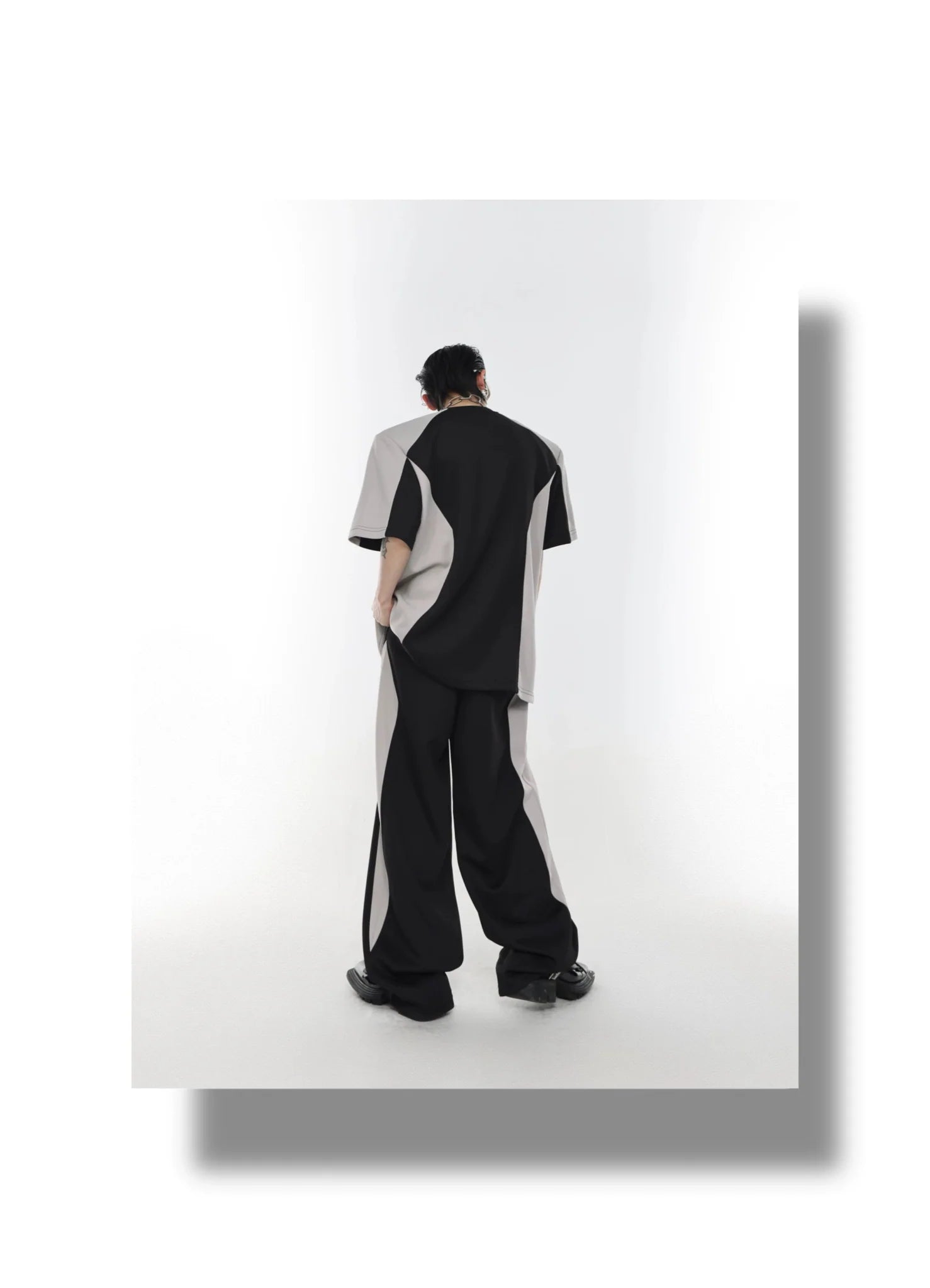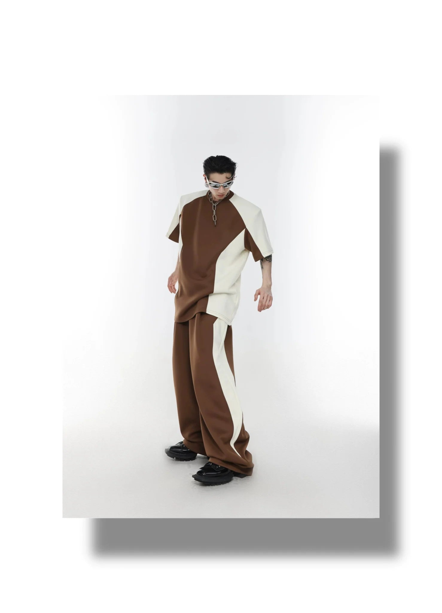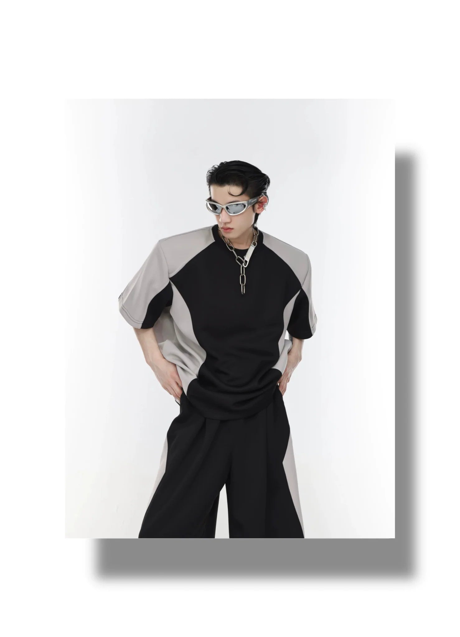Color Blocking Shoulder Pad Short Sleeve Casual T-Shirt and Sports Set