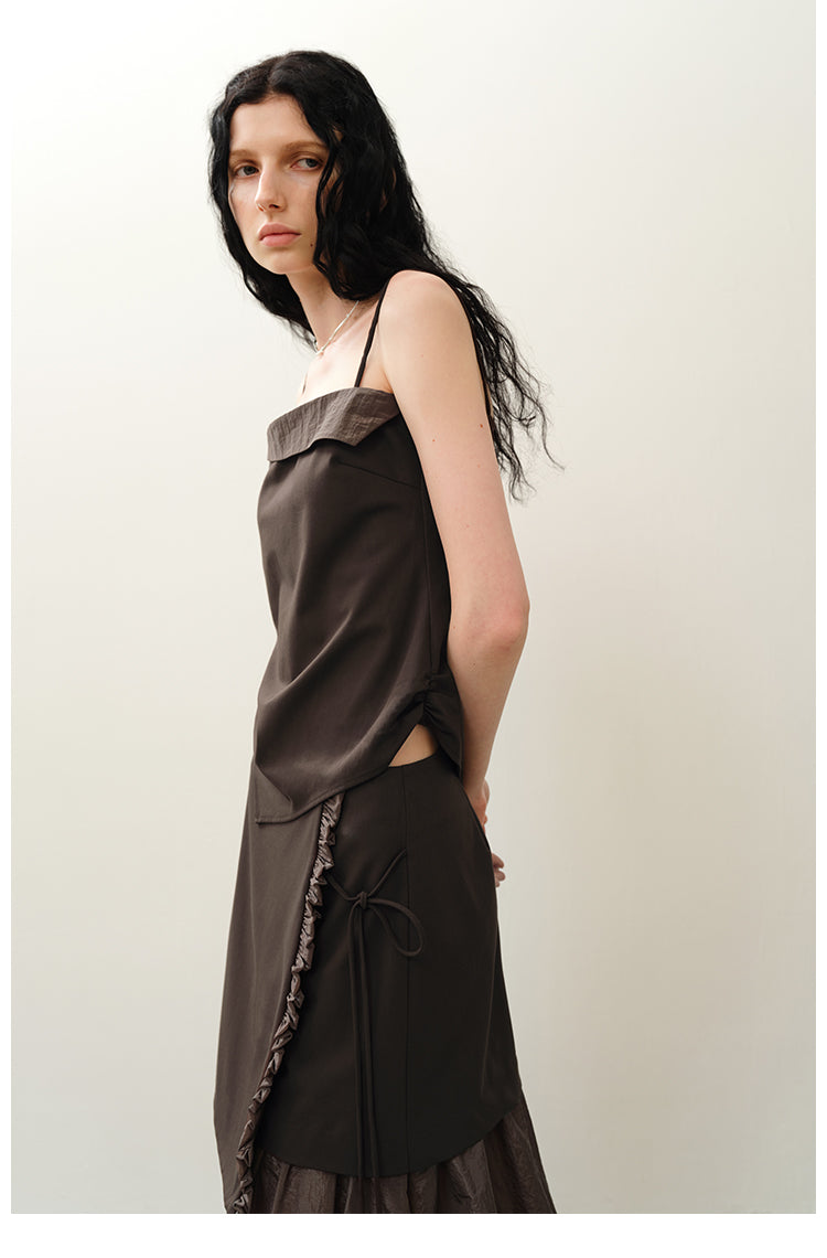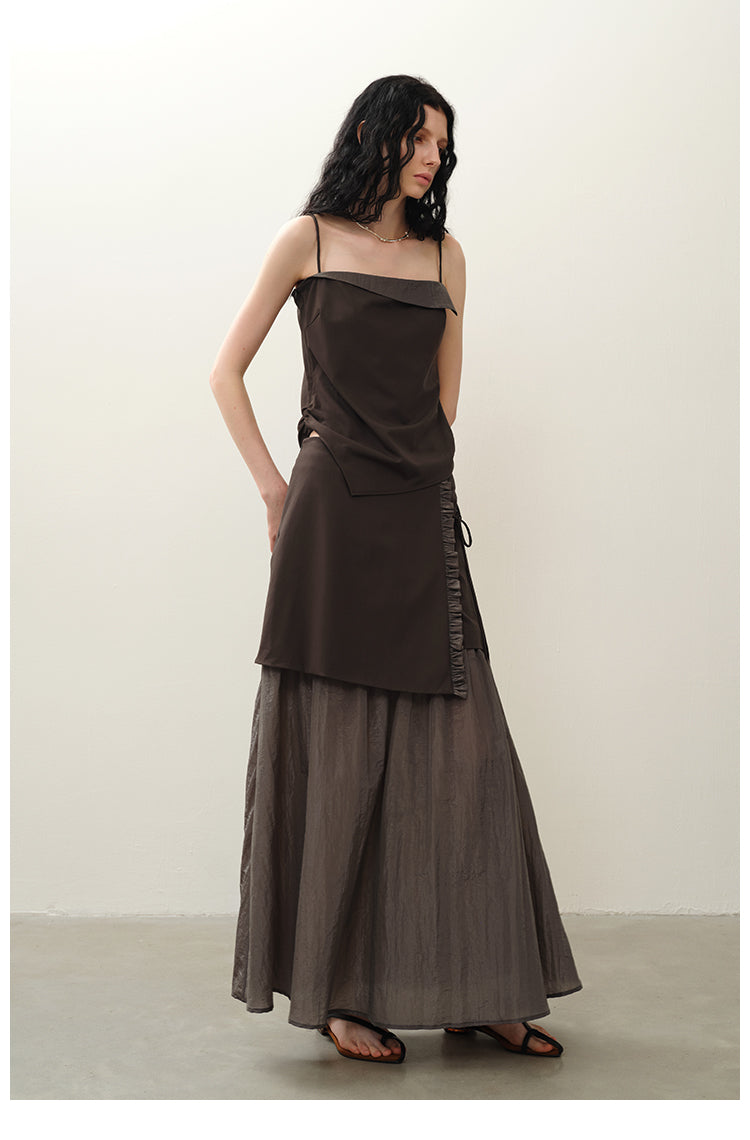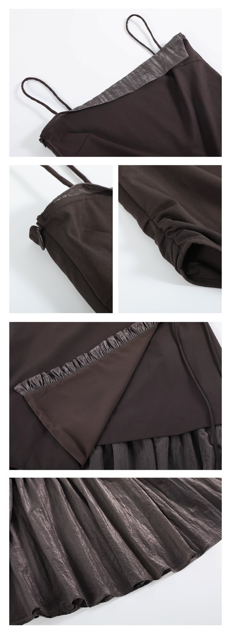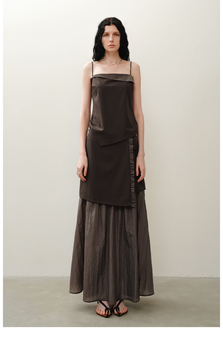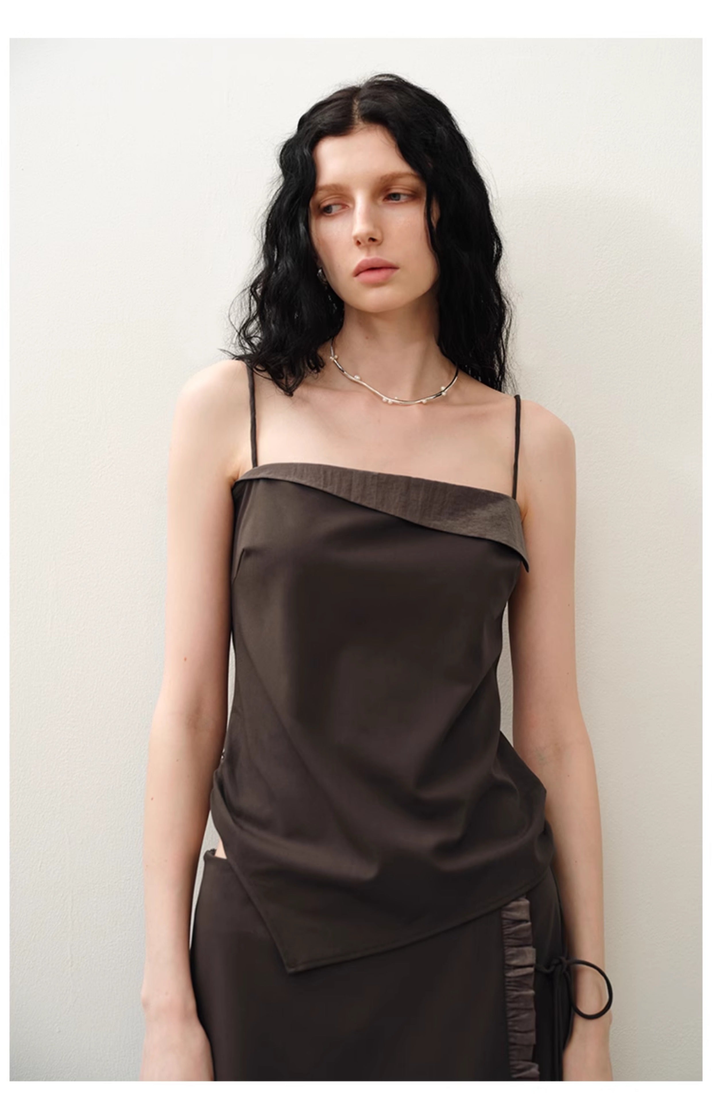 냉각 대나무 섬유 새틴 스트랩 탑과 스커트 세트