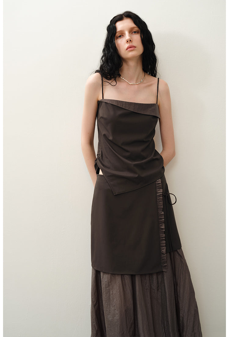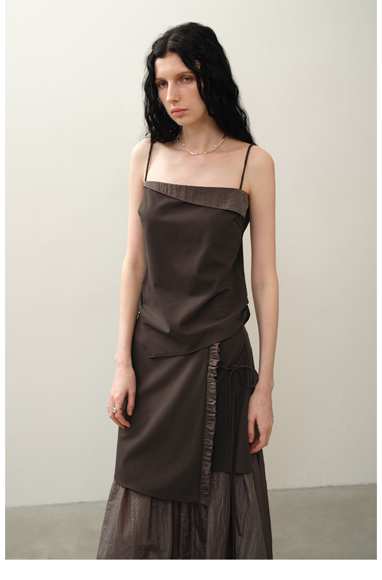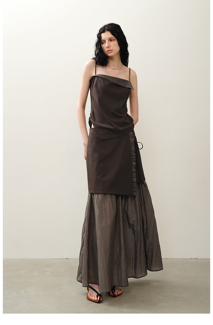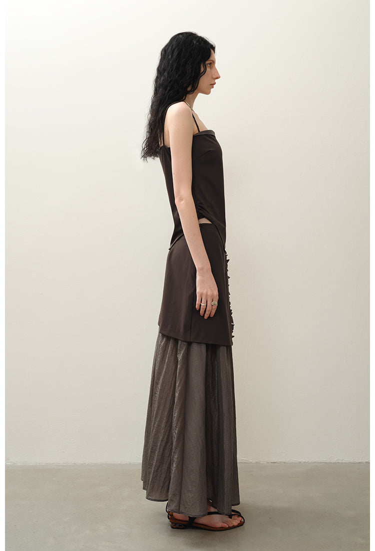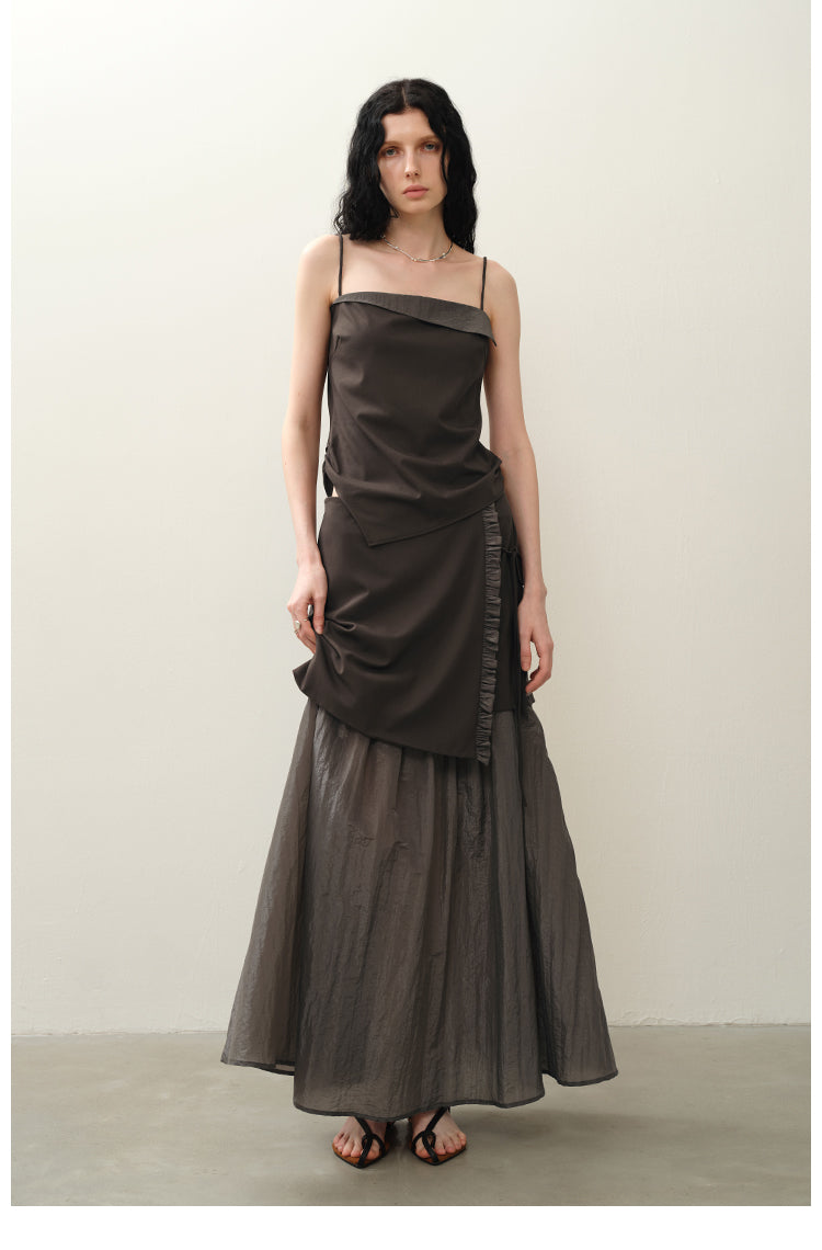 냉각 대나무 섬유 새틴 스트랩 탑과 스커트 세트