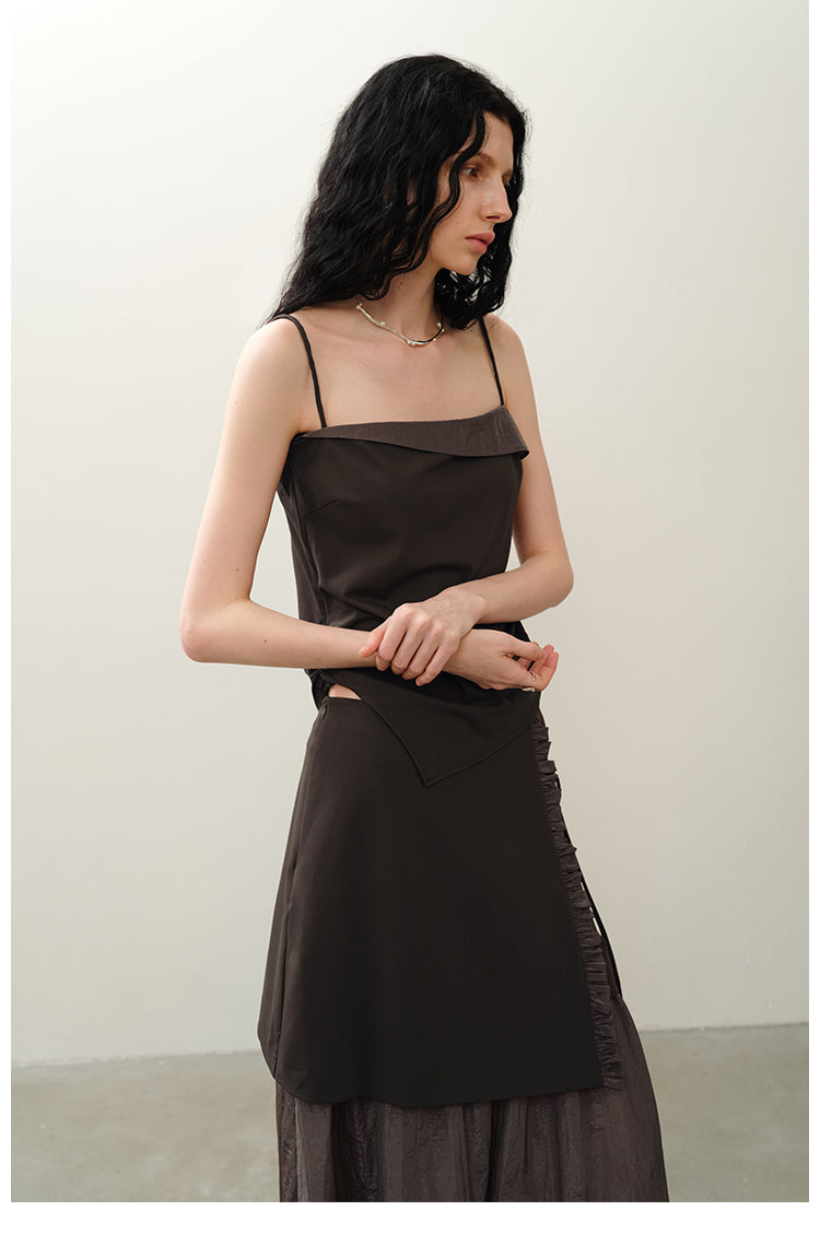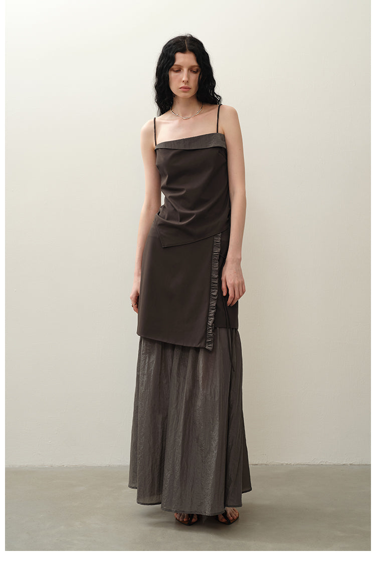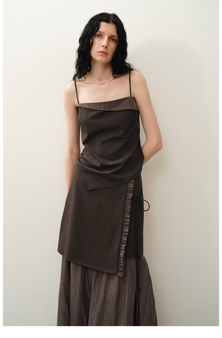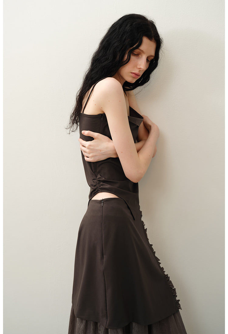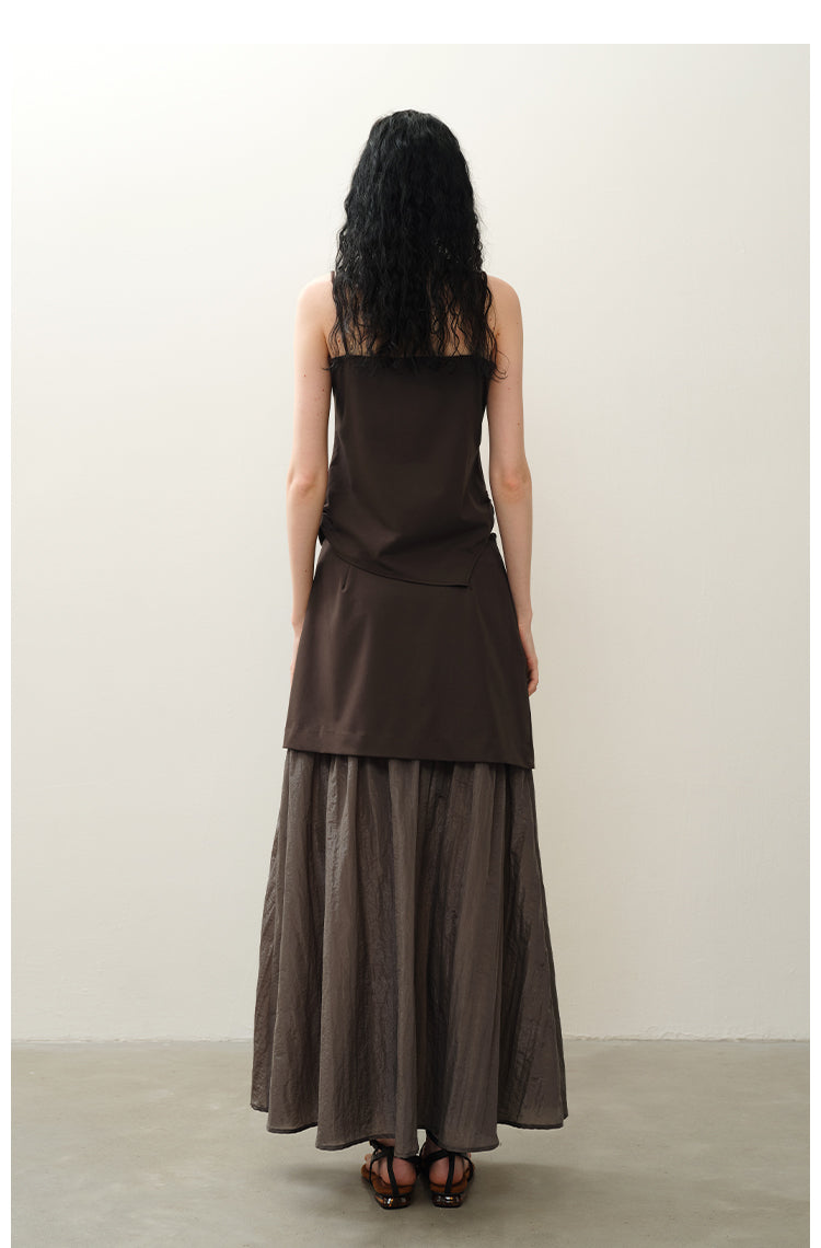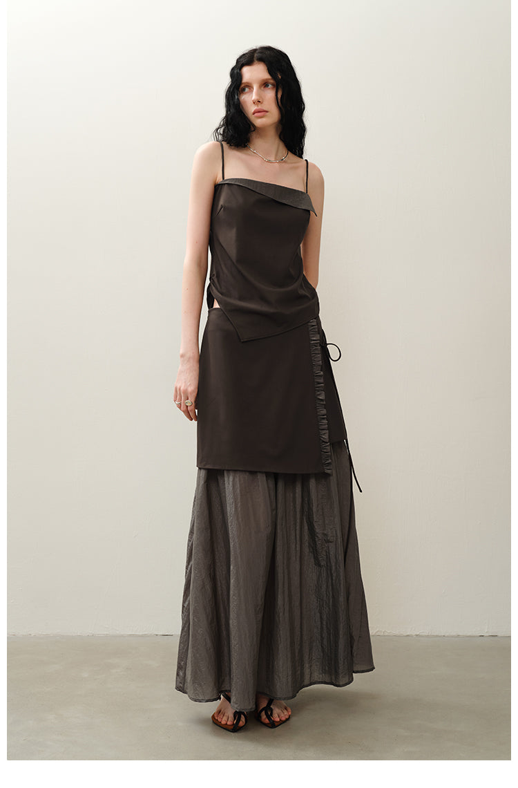 냉각 대나무 섬유 새틴 스트랩 탑과 스커트 세트