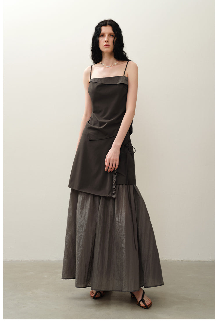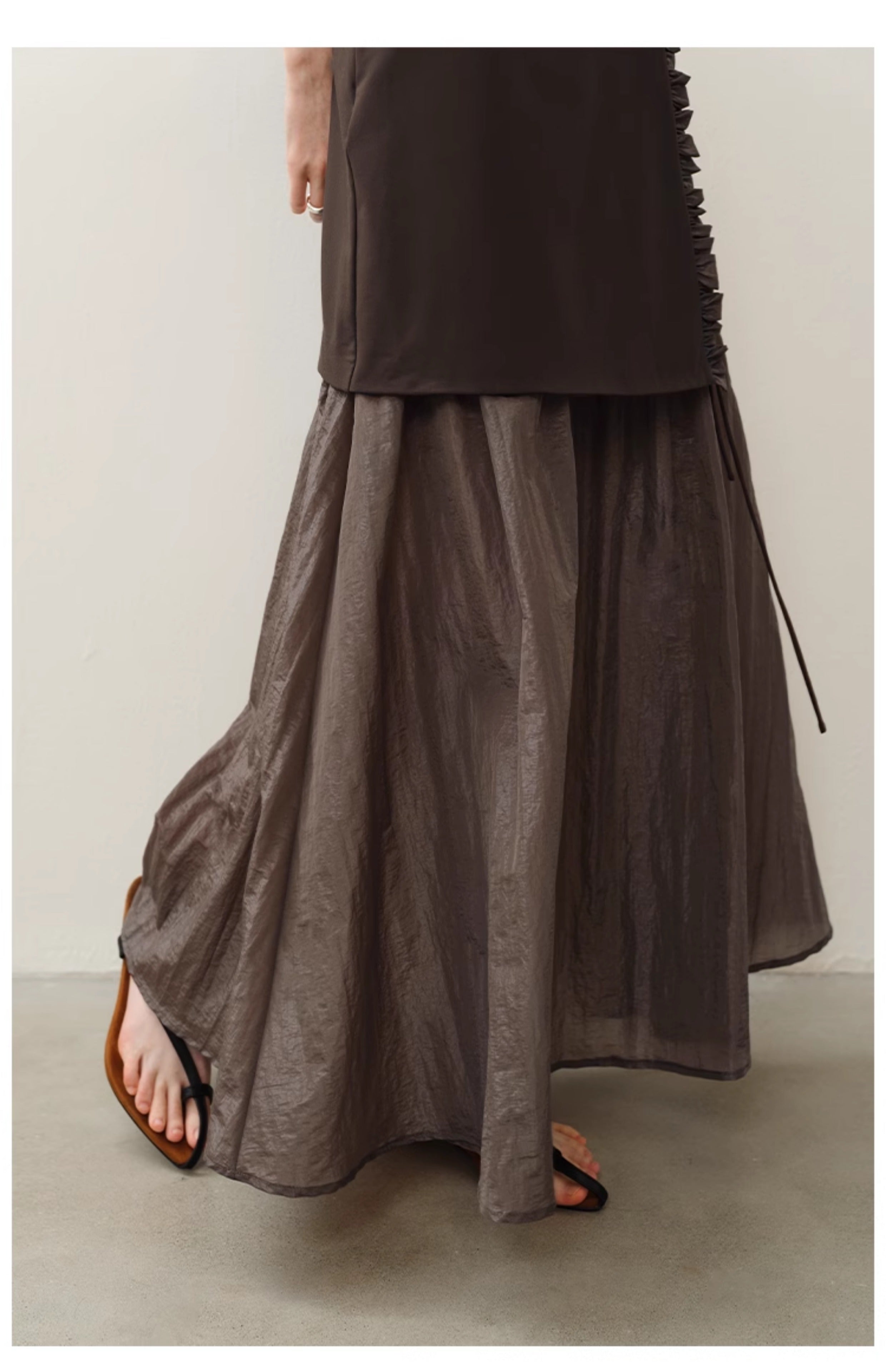 모델 Sara는 S 사이즈 스트랩 탑과 M 사이즈 스커트를 입고 있습니다. 키: 177 cm, 체중: 52 kg, 가슴: 79 cm, 허리: 59 cm, 엉덩이: 89 cm.