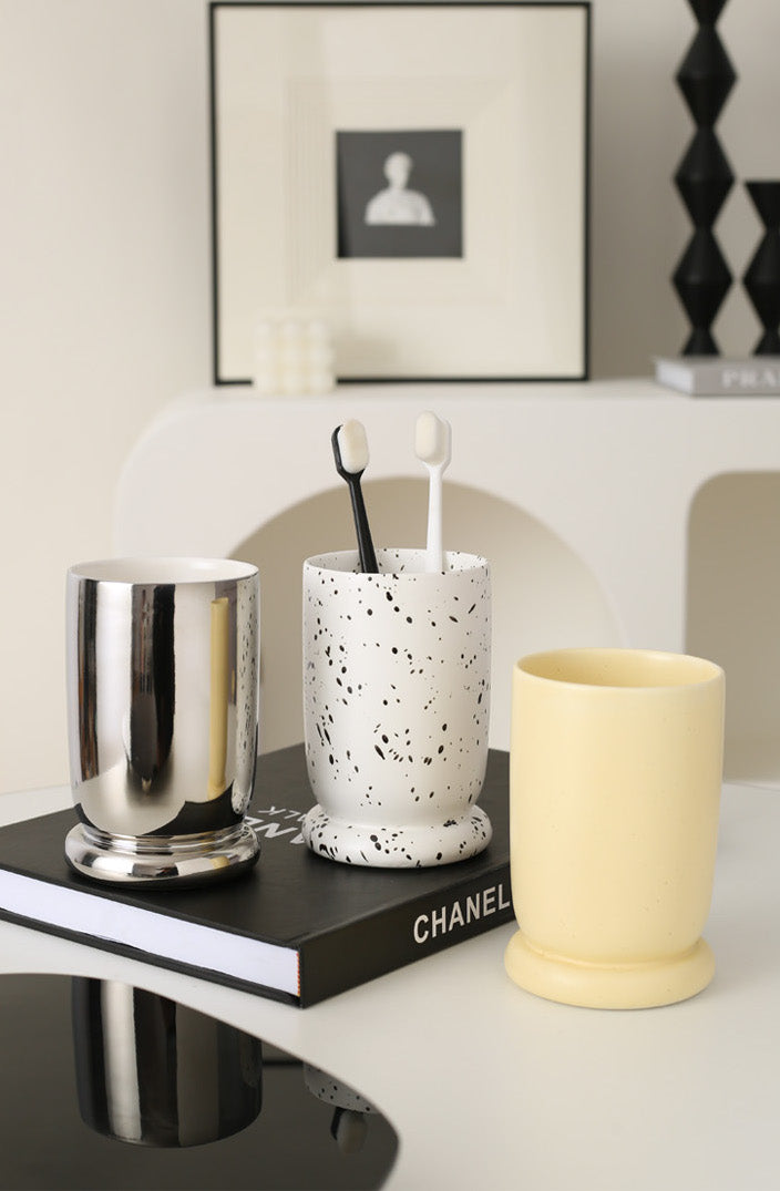 정밀하게 조각된 이 세라믹 칫솔컵은 뚜렷한 원형 베이스를 통해 미니멀한 미학을 자랑합니다. 각 곡선과 선은 단순한 기하학적 원리의 영향을 받아 세련된 생활에 대한 이상적인 비전을 구현합니다. 예술적인 디자인으로 당신의 일상을 더욱 품격있게 만들어보세요.
