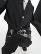 It is made to be thick, so it goes great with high-waisted pants or wide pants.