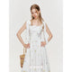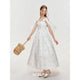 Kroche Floral Embroidered Lace Up Long Dress