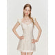 Kroche Hollow Out Embroidered Lace Short Dress Beige