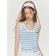 Kroche Hollow Out Striped Embroidered Knit Vest Blue