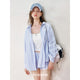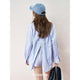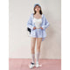 Kroche Lace Edge Patchwork Plaid Shirt Blue