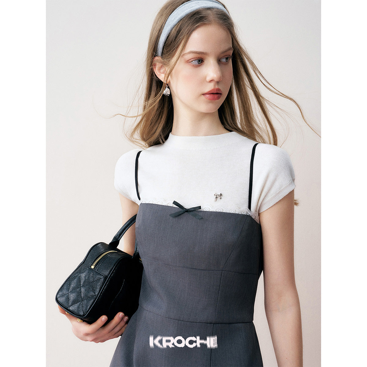 Kroche Lace Paneled Bow Fitted Halter Dress