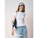 Kroche Lace Sleeve Clean Fit Logo Slim Fit Top White