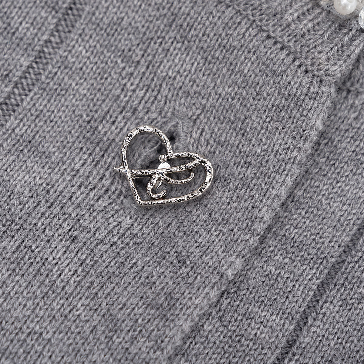 Kroche Pearl Collar Woolen Short Sleeved Cardigan Grey