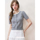 Kroche Pearl Collar Woolen Short Sleeved Cardigan Grey