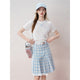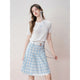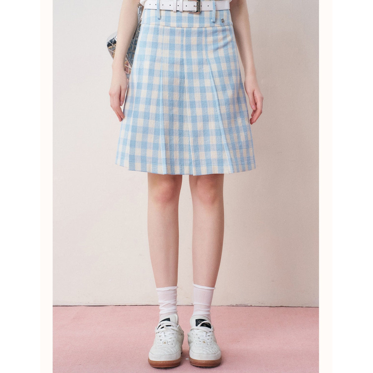 Kroche Plaid Pleated High-Waisted Long Skirt Blue