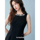 Kroche Sequin Beaded Floral Sleeveless Dress Black