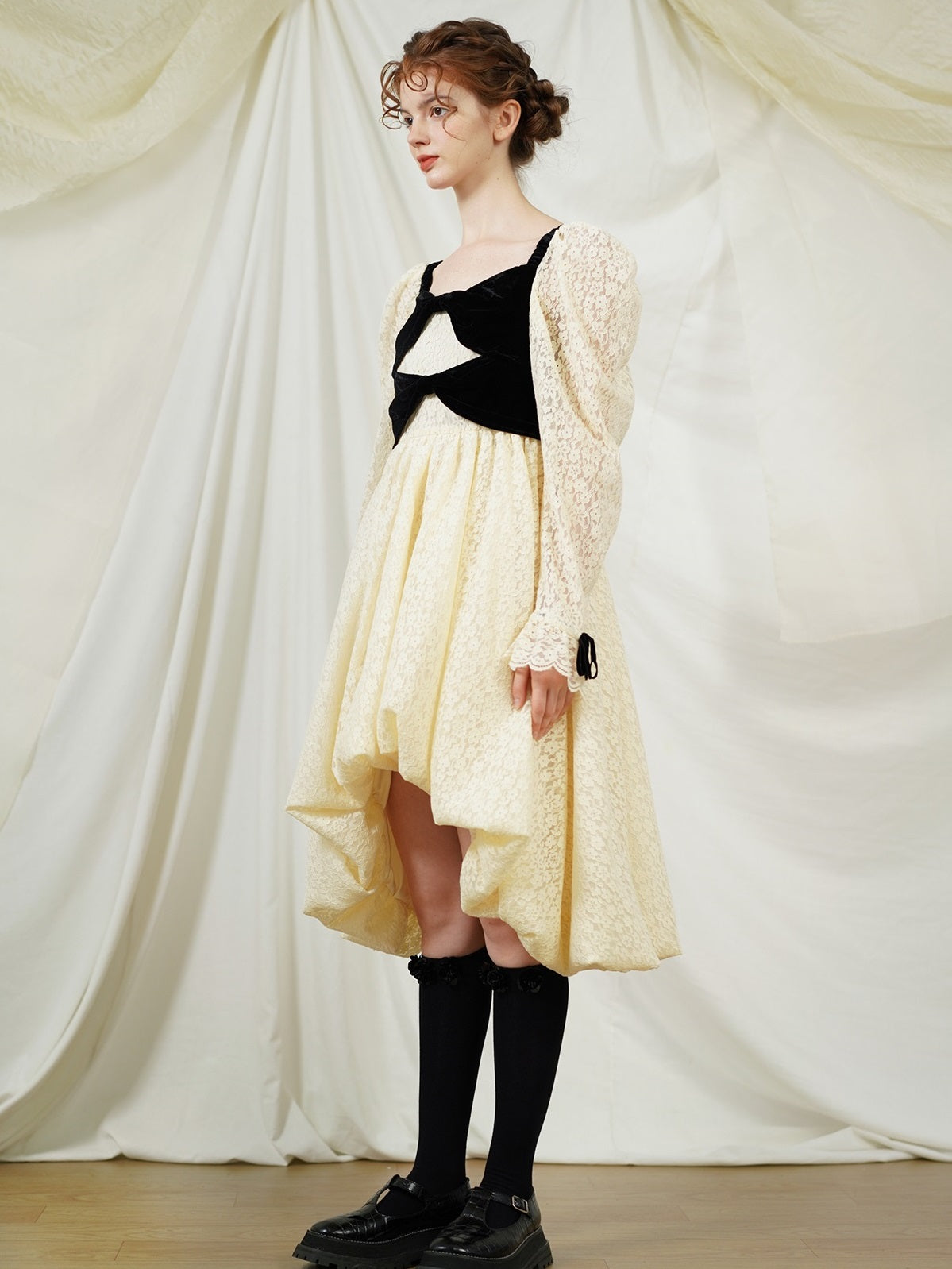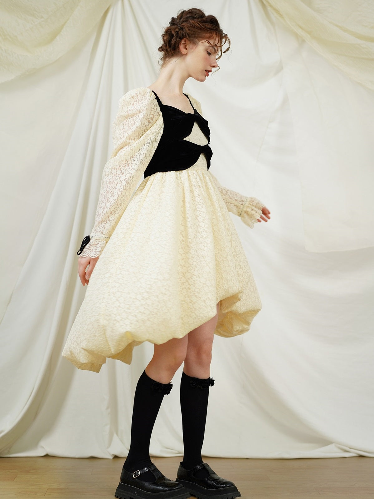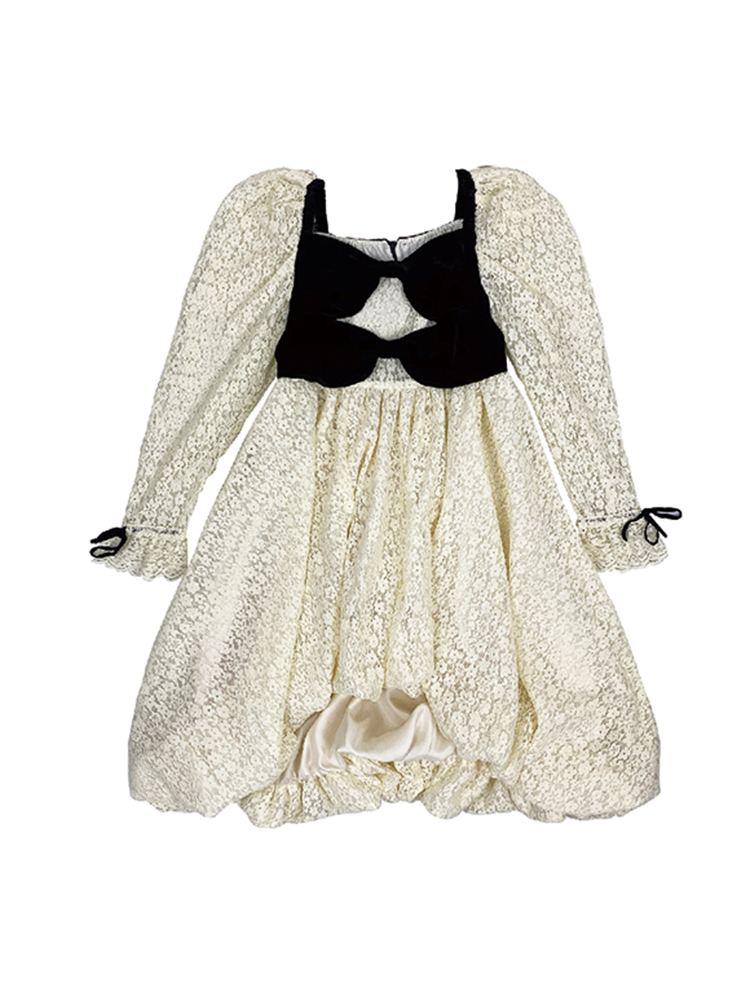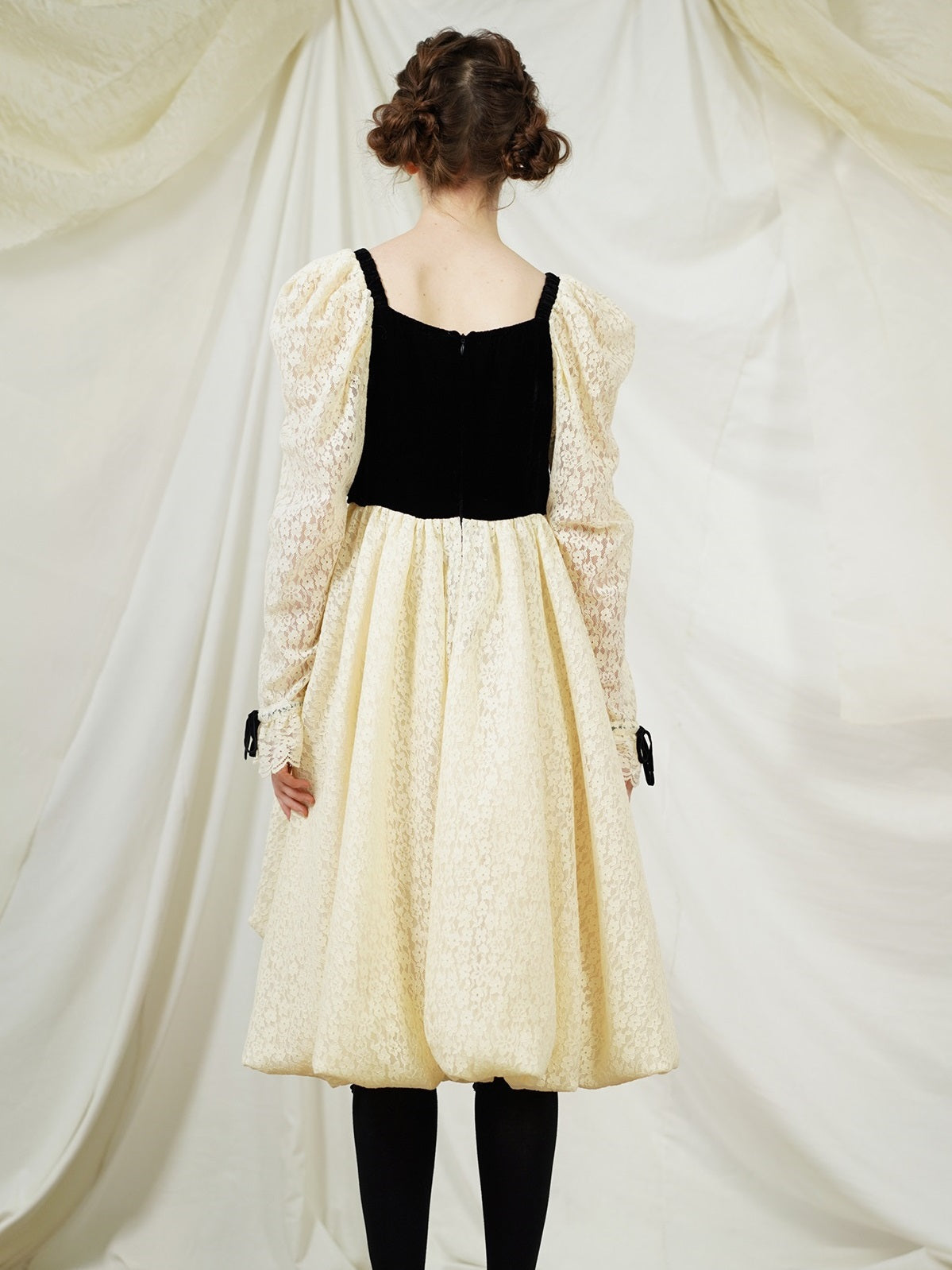 레이스 퍼프슬리브 벌룬플라워 원피스